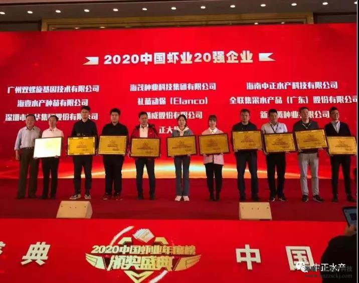 年會期間還推出了“2020中國蝦業二十強企業”、“2020中國養蝦高手”等中國蝦業年度榜頒獎盛典。在此次年會上,海南中正水產科技有限公司再獲殊榮,被評為“2020中國蝦業二十強企業”,中正蝦苗再次得到業界認可和肯定。