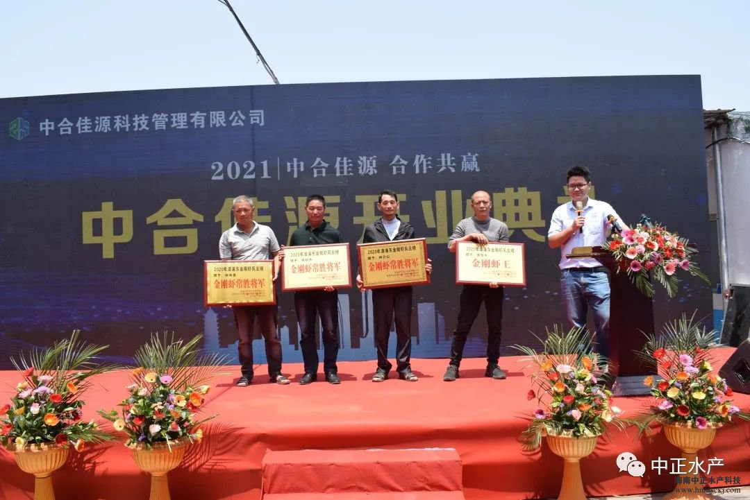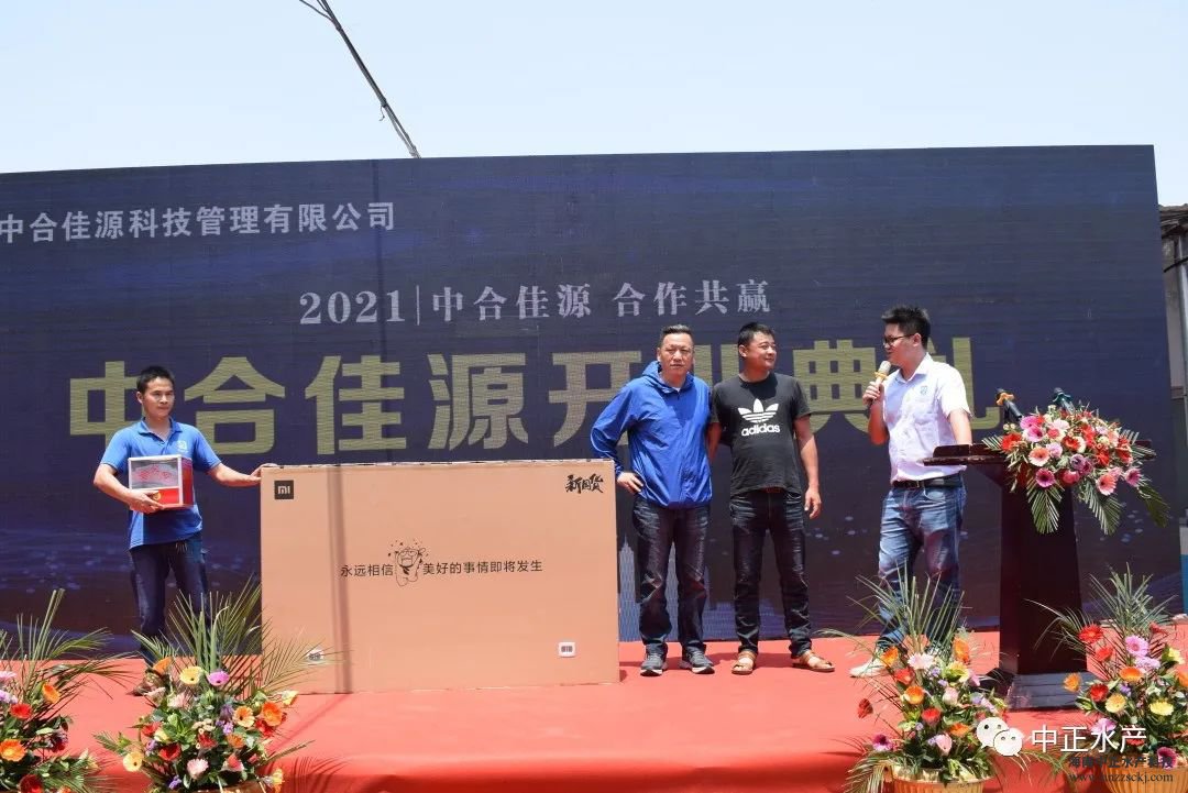 2021年4月24日中合佳源漳浦基地在福建省漳浦縣前亭舉行開業典禮。中合佳源作為中正水產公司旗下的第二品牌,主營南美白對蝦高抗蝦苗、斑節對蝦蝦苗,這是在廣大養殖戶朋友們的呼聲中應運而生的品牌,在開業典禮前便備受矚目。