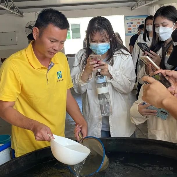 近日,三亞熱帶海洋學院水產養殖專業和海洋漁業科學與技術專業的師生們走進中正,深入學習對蝦繁育流程,將理論與實踐進行系統結合。