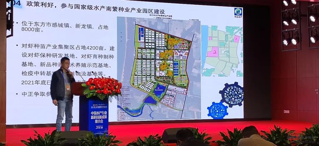 中正水產研發團隊顧問陳剛,根據中正在育種育苗板塊多年生物安保基地建設總結積累出的豐富經驗,與現場人員分享了種苗管理的關鍵技術,作了”創新引領,打造一流水產南繁育種基地“的專題報告,讓大家更深入的了解“優質、穩定”的蝦苗是如何培育出來的。并對公司的運營情況、未來發展情況以及南繁種業產業園推進情況等多方面向大家進行詳細介紹。