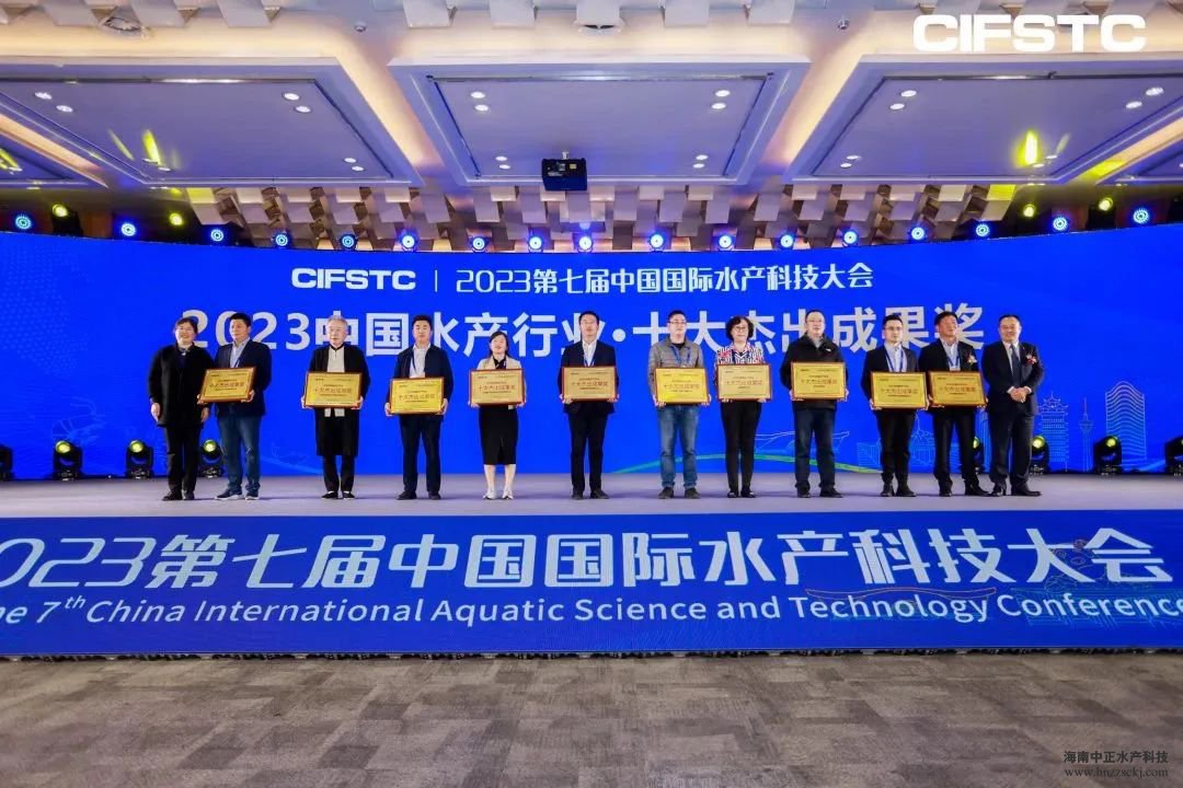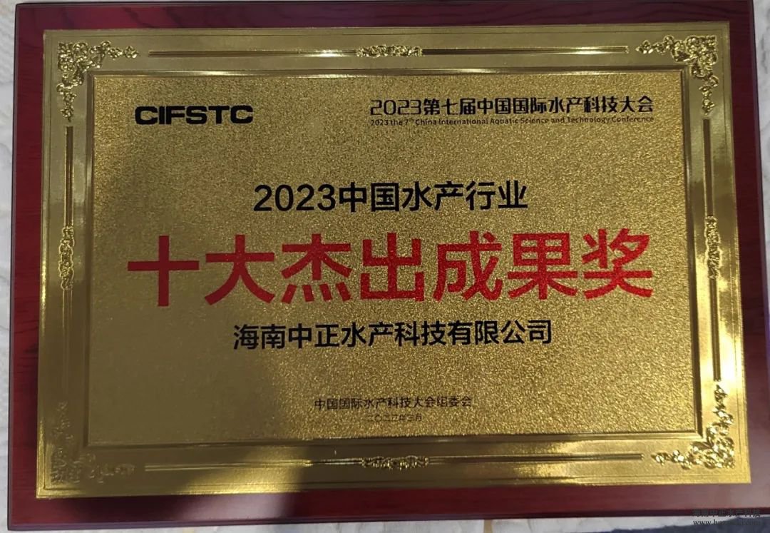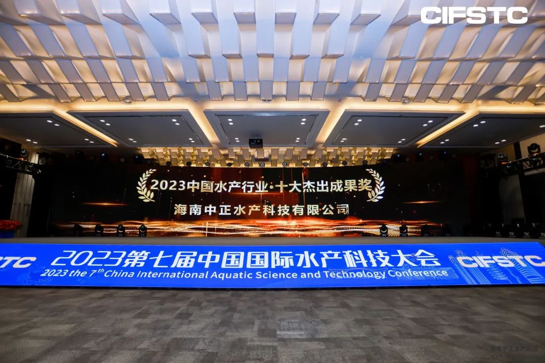 組委會根據對中正水產的綜合實力、發展潛力、創新活力、成果轉化率等多方面考核結果,頒予中正水產“2023中國水產行業十大杰出成果獎”。中正水產中山基地負責人羅崗代表企業上臺領獎。